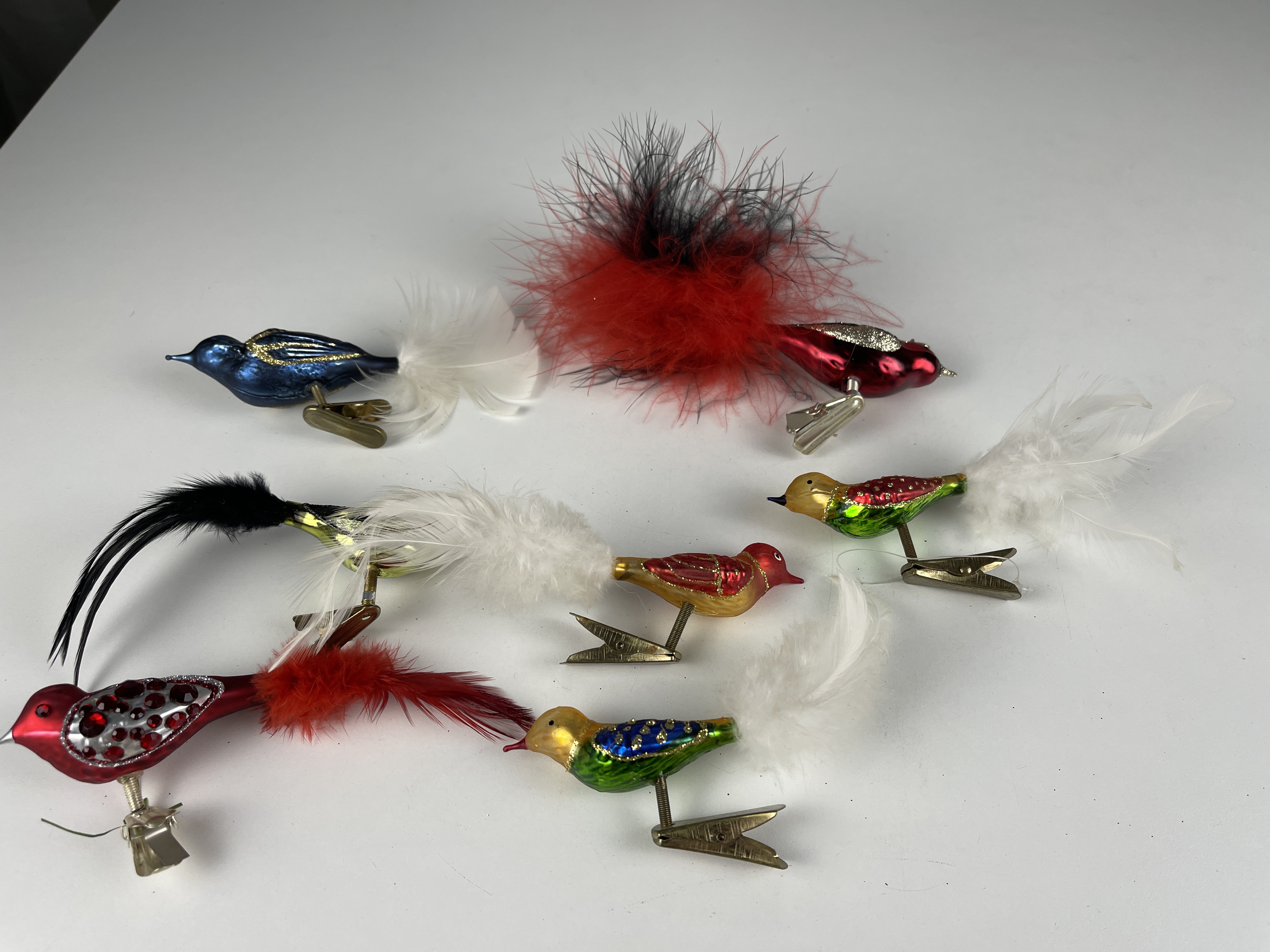 Christbaum Schmuck 7 Vögel Clips ca. 8 cm - Zustand siehe Fotos