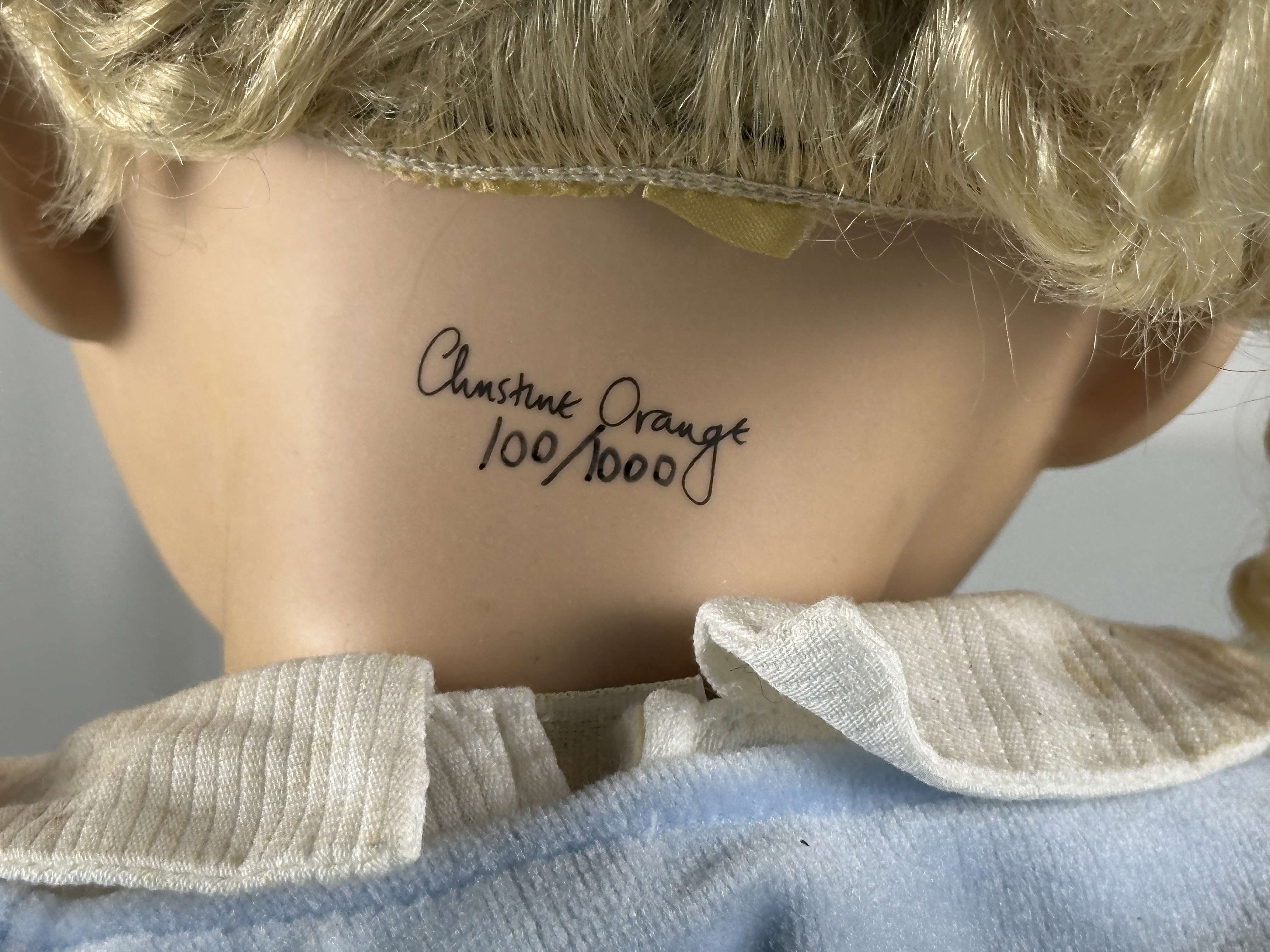 Christine Orange Porzellan Künstlerpuppe Puppe 67 cm. Zustand Verschmutzt