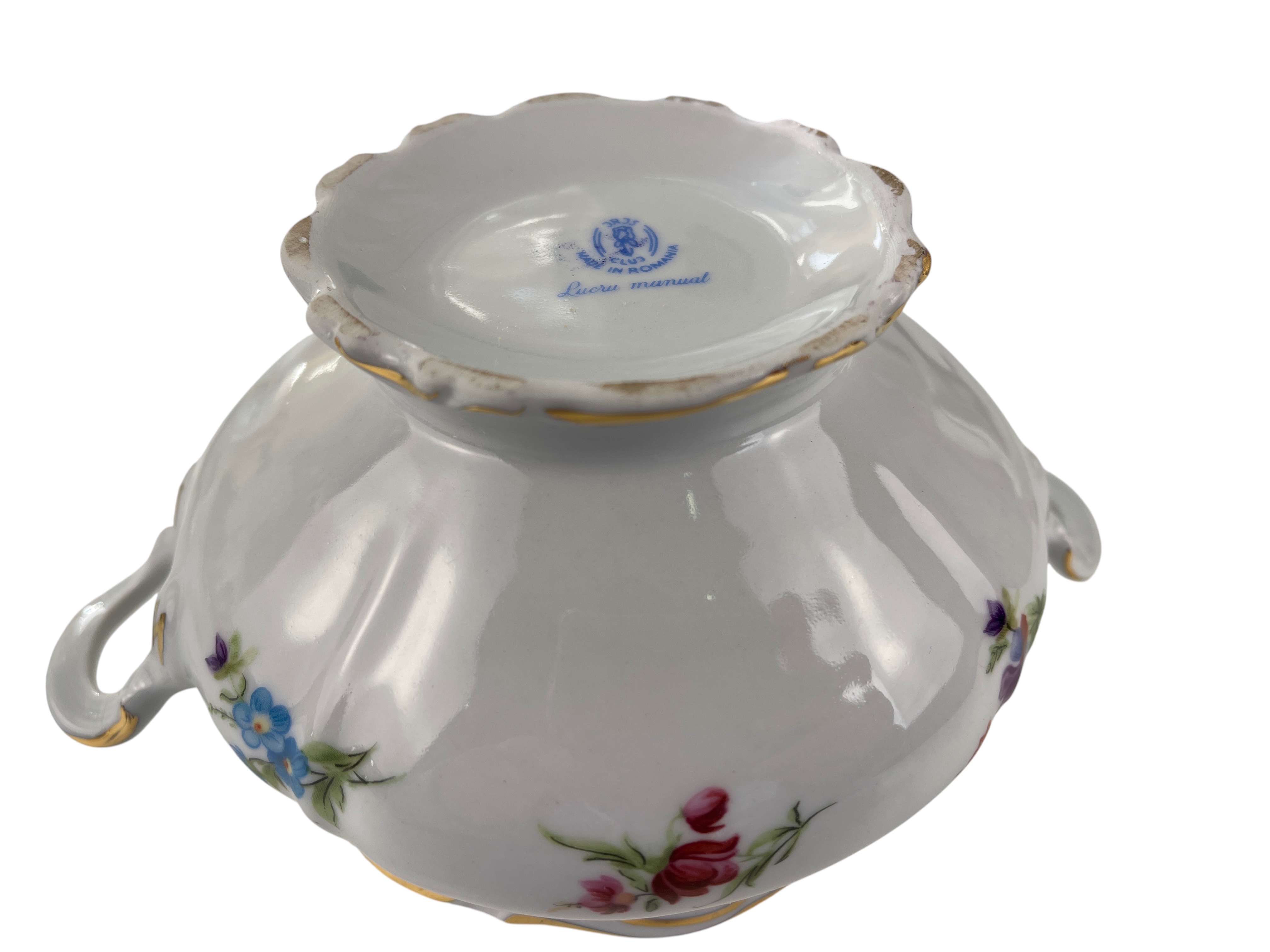 Cluj-Napoca Porzellan Deckeldose + Löffel 15 cm - Top Zustand