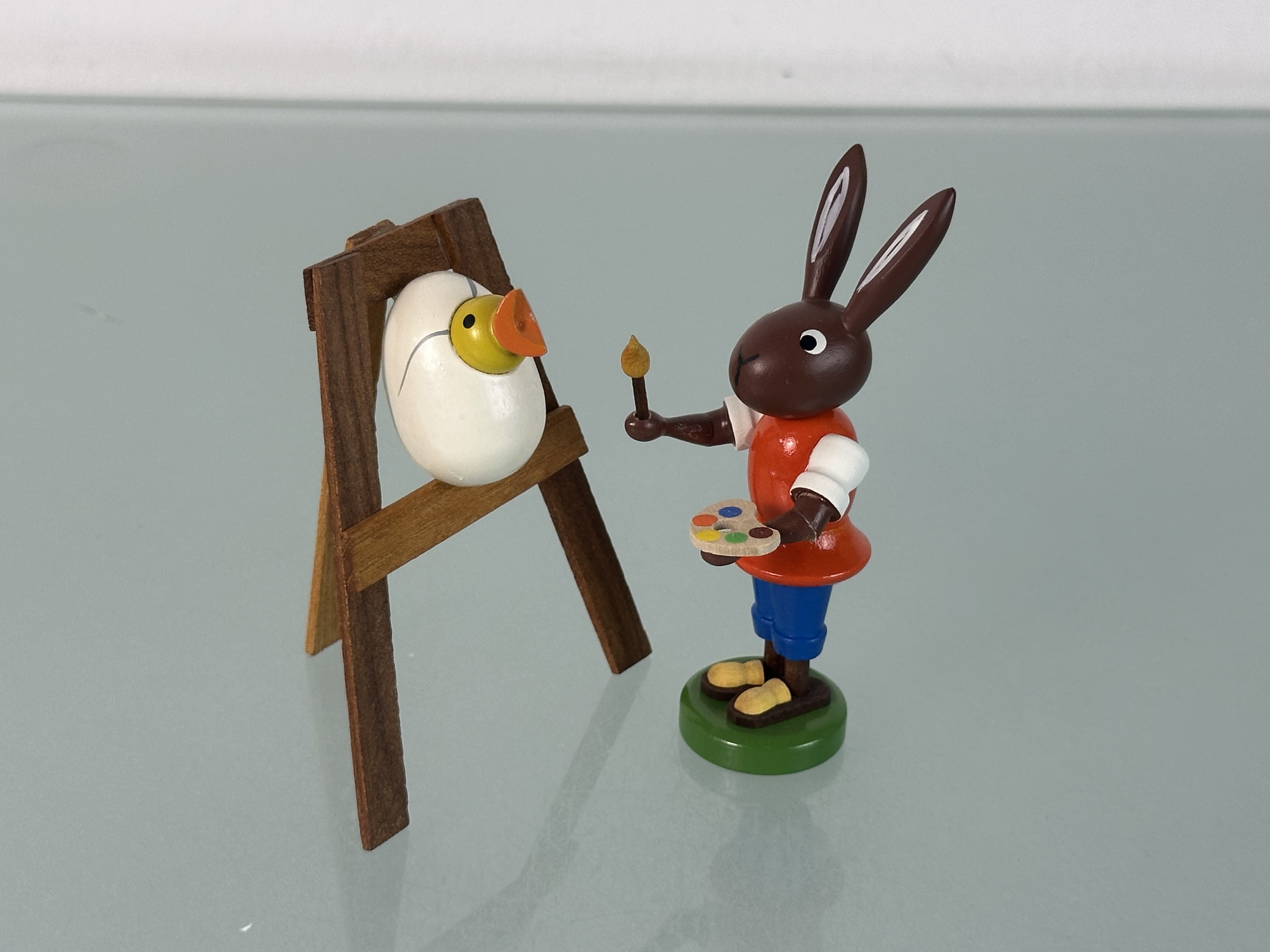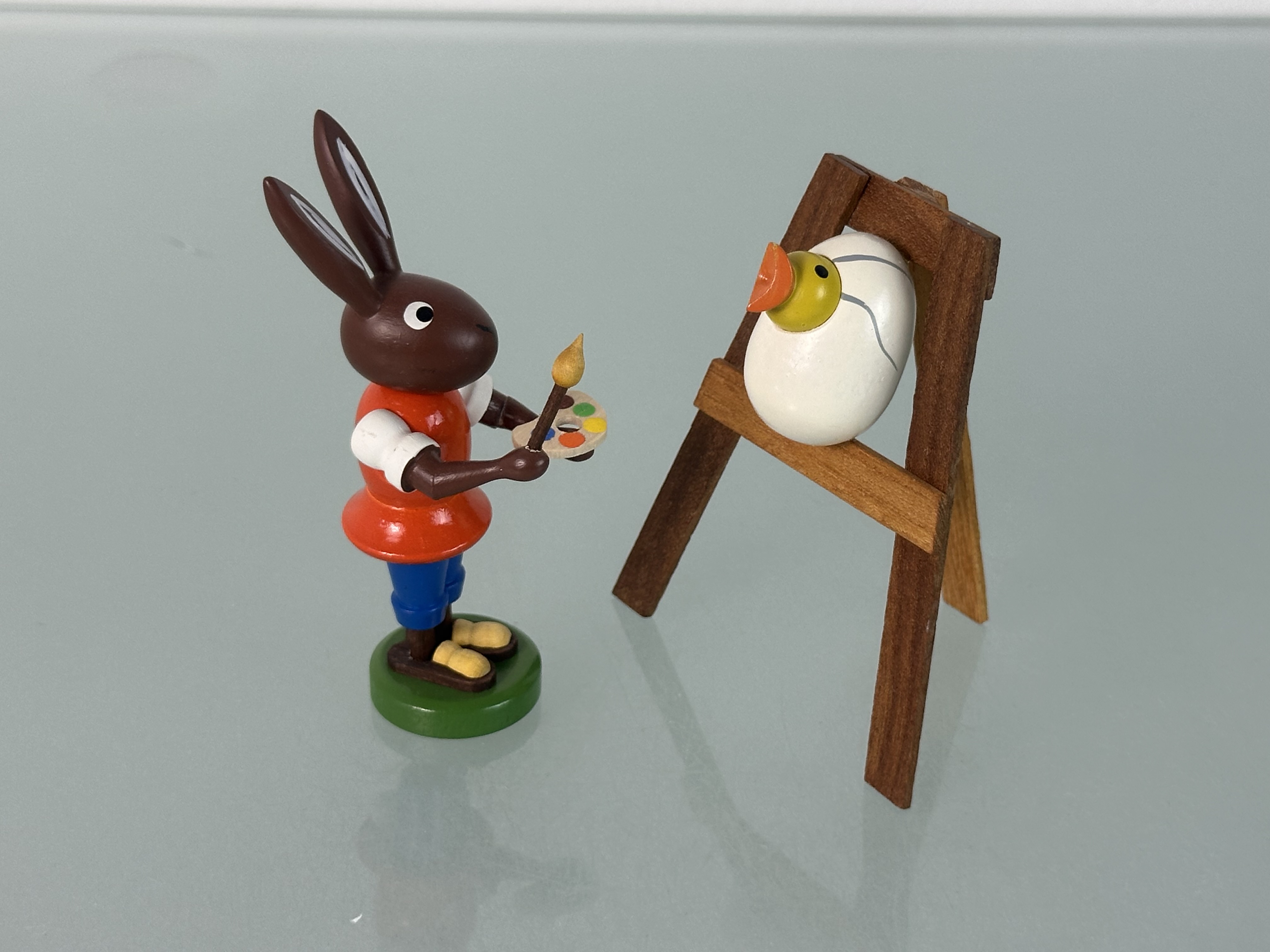 Erzgebirge Figur Osterhase 10 cm mit Staffelei 9 x 7,1 cm. Top Zustand