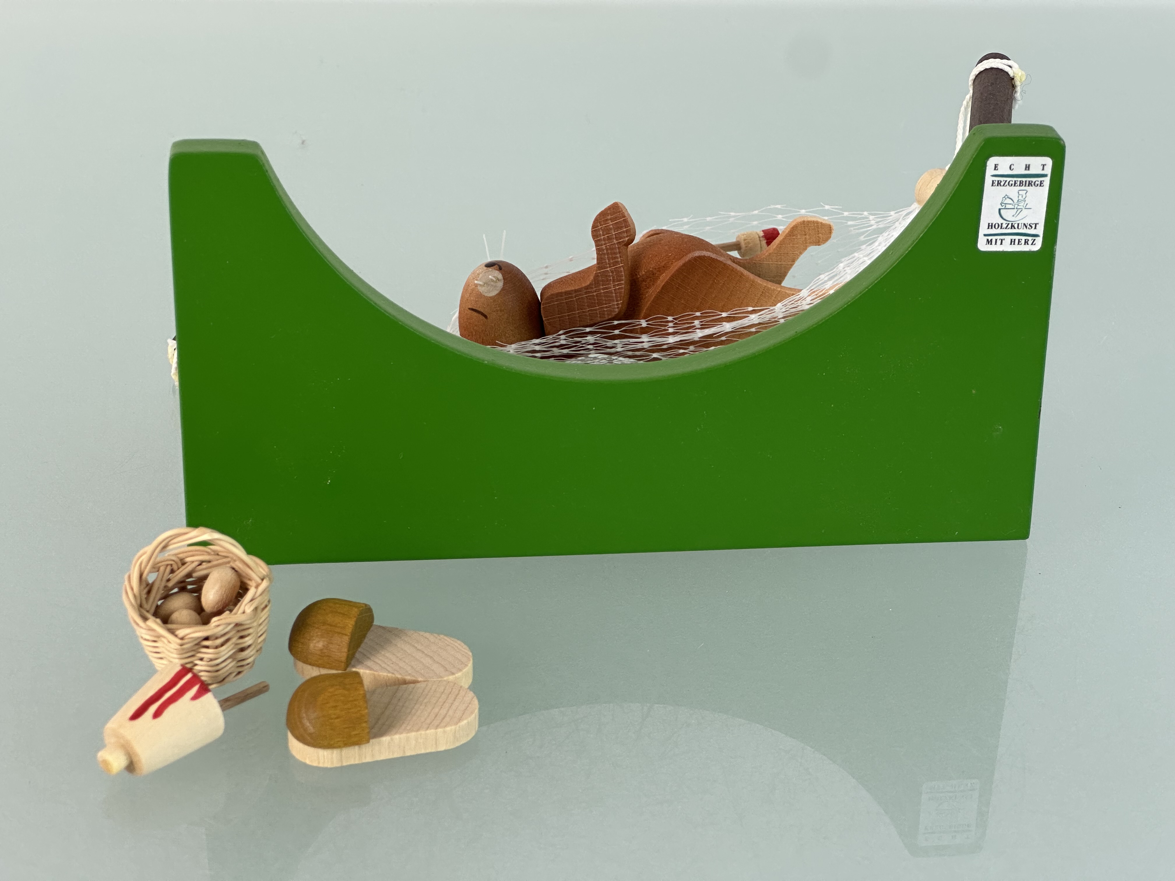 Erzgebirge Hase in Hängematte 8 x 16 x 8,2 cm - Top Zustand