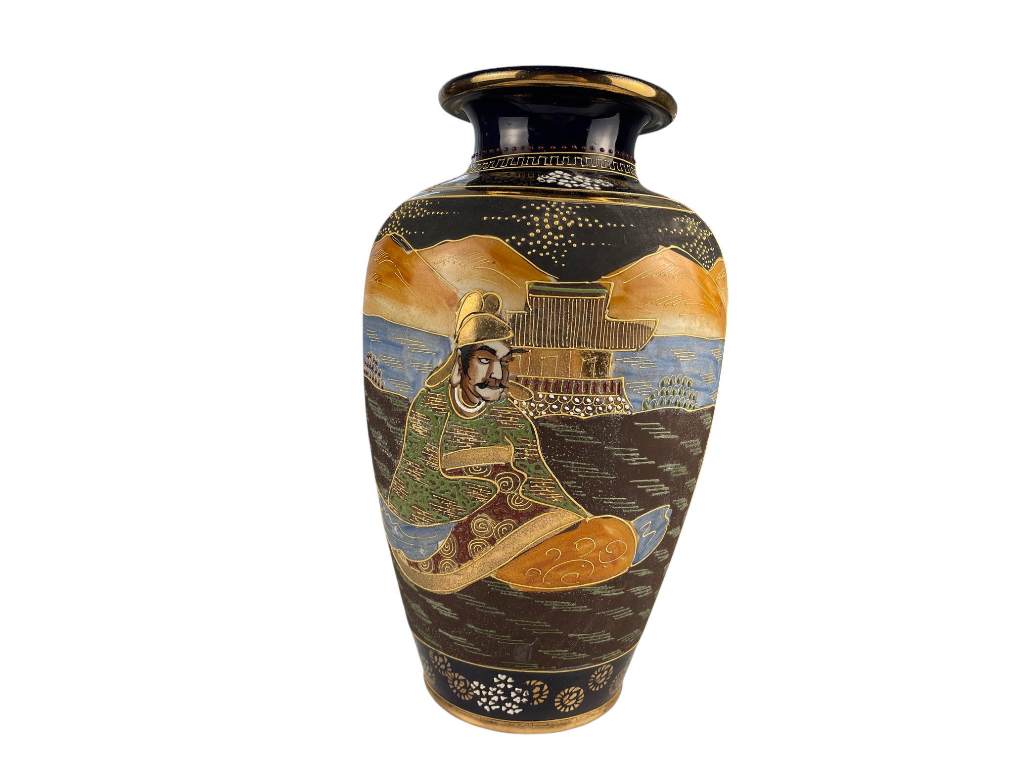 Japanische Porzellan Satsuma Vase 32 cm. Guter Zustand