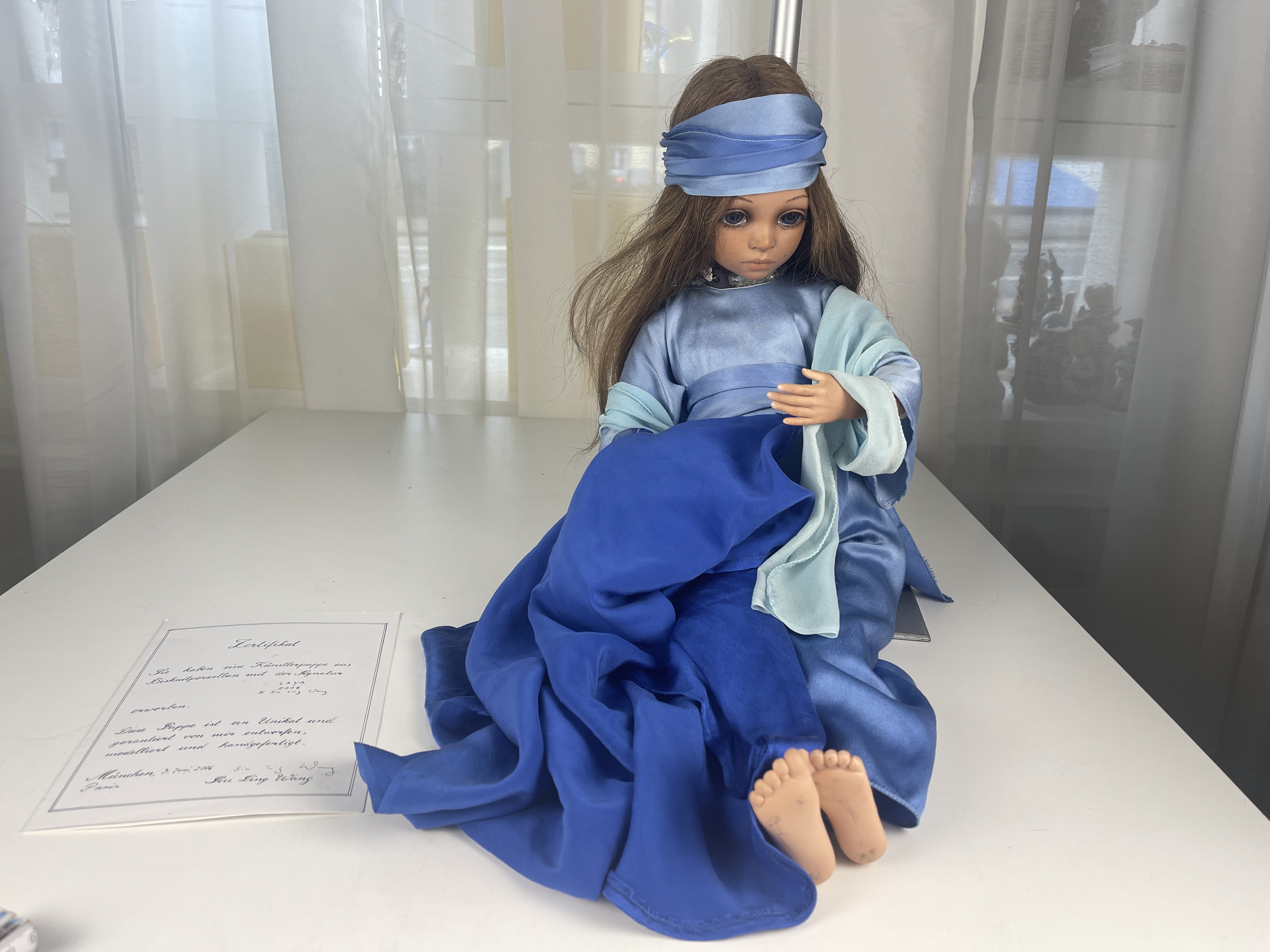 Künstlerpuppe Siu Ling Wang Porzellan Puppe laya 60 cm - Zustand siehe Fotos