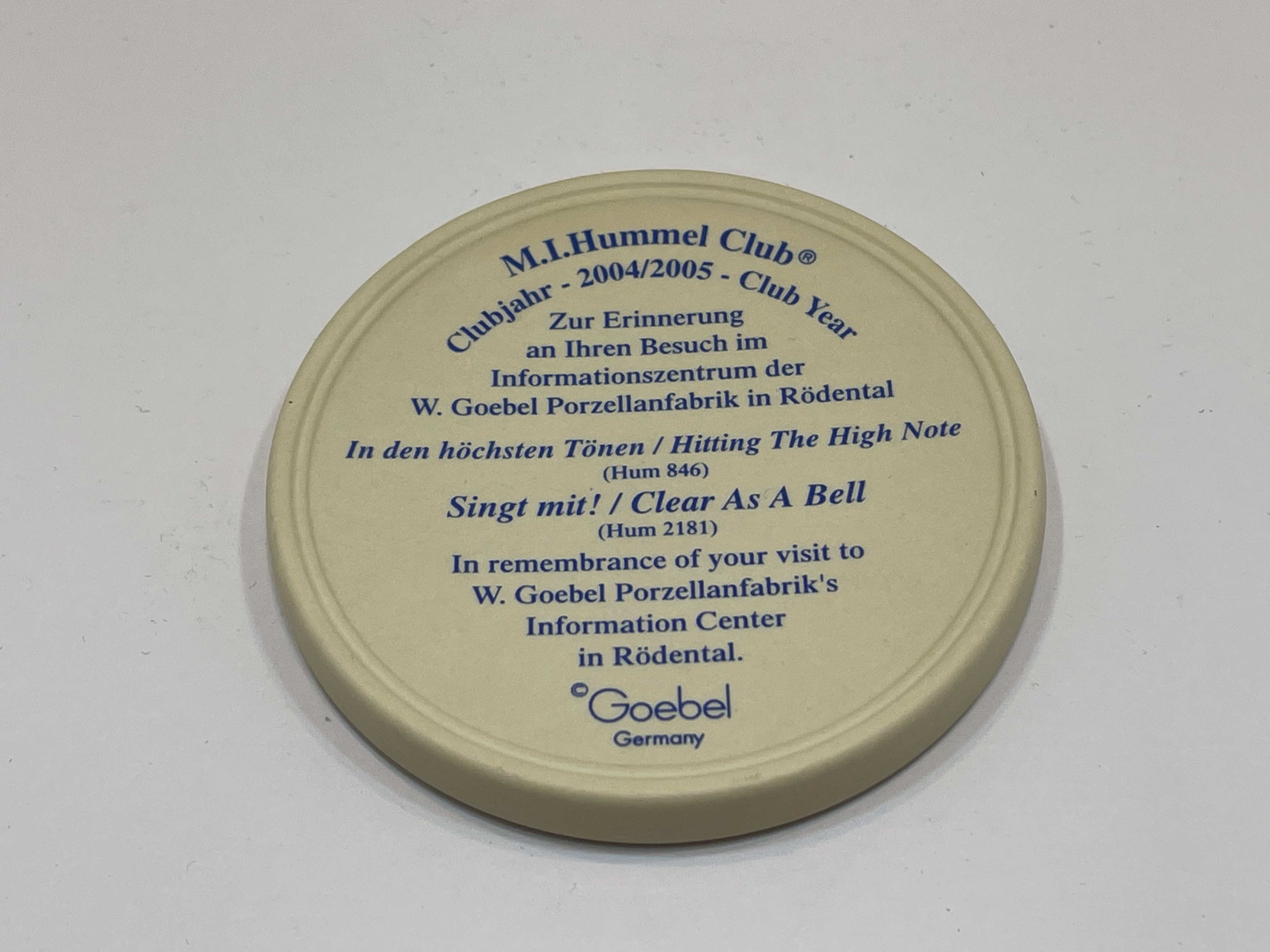 Produktinformationen " M.I. Hummel Plakette Ø 7 cm. 1 Wahl. Top Zustand. "