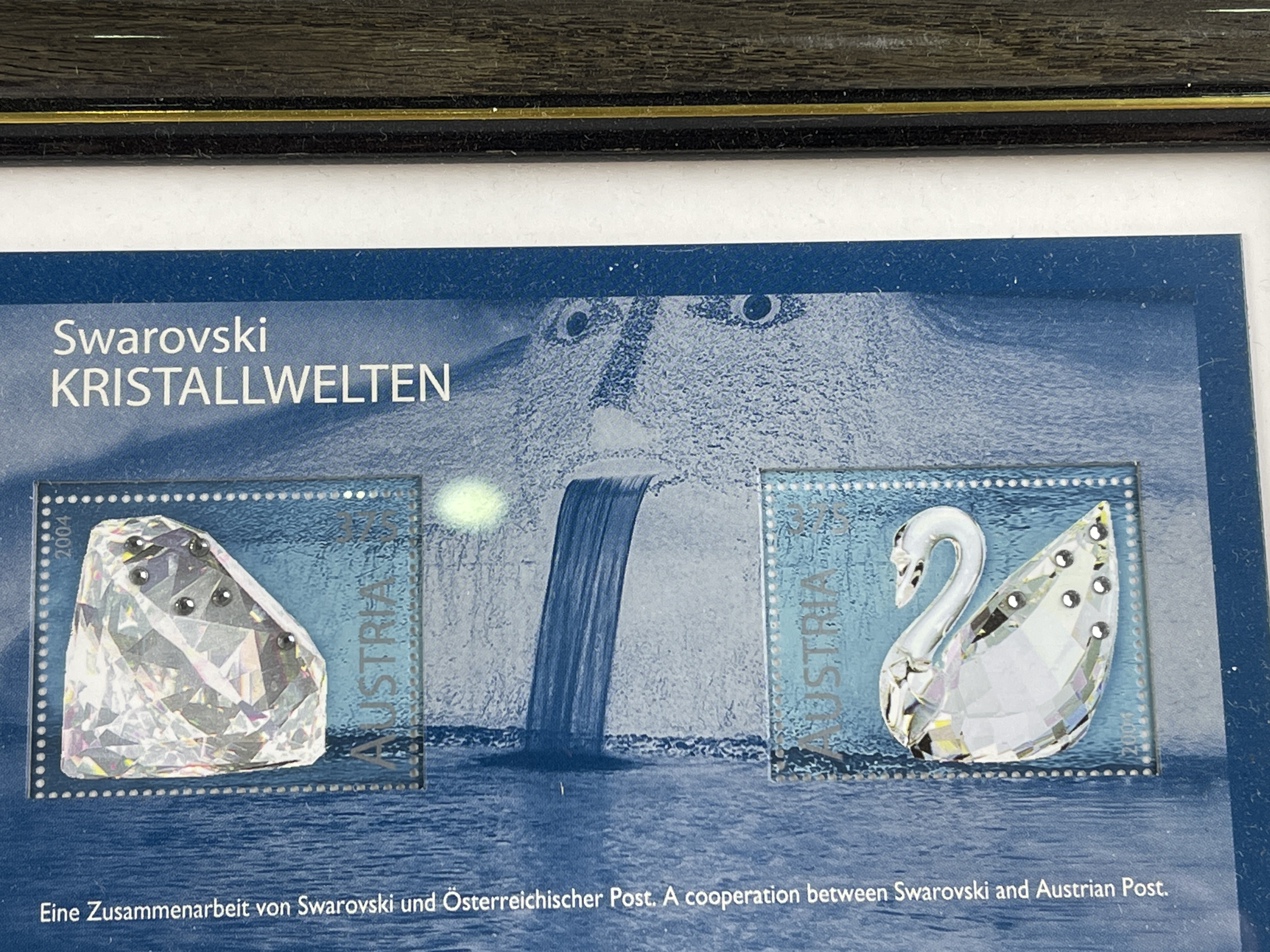 Swarovski Österreichische Briefmarken 2 Stück + Bilderrahmen 22 x 18 cm. Top Zustand.
