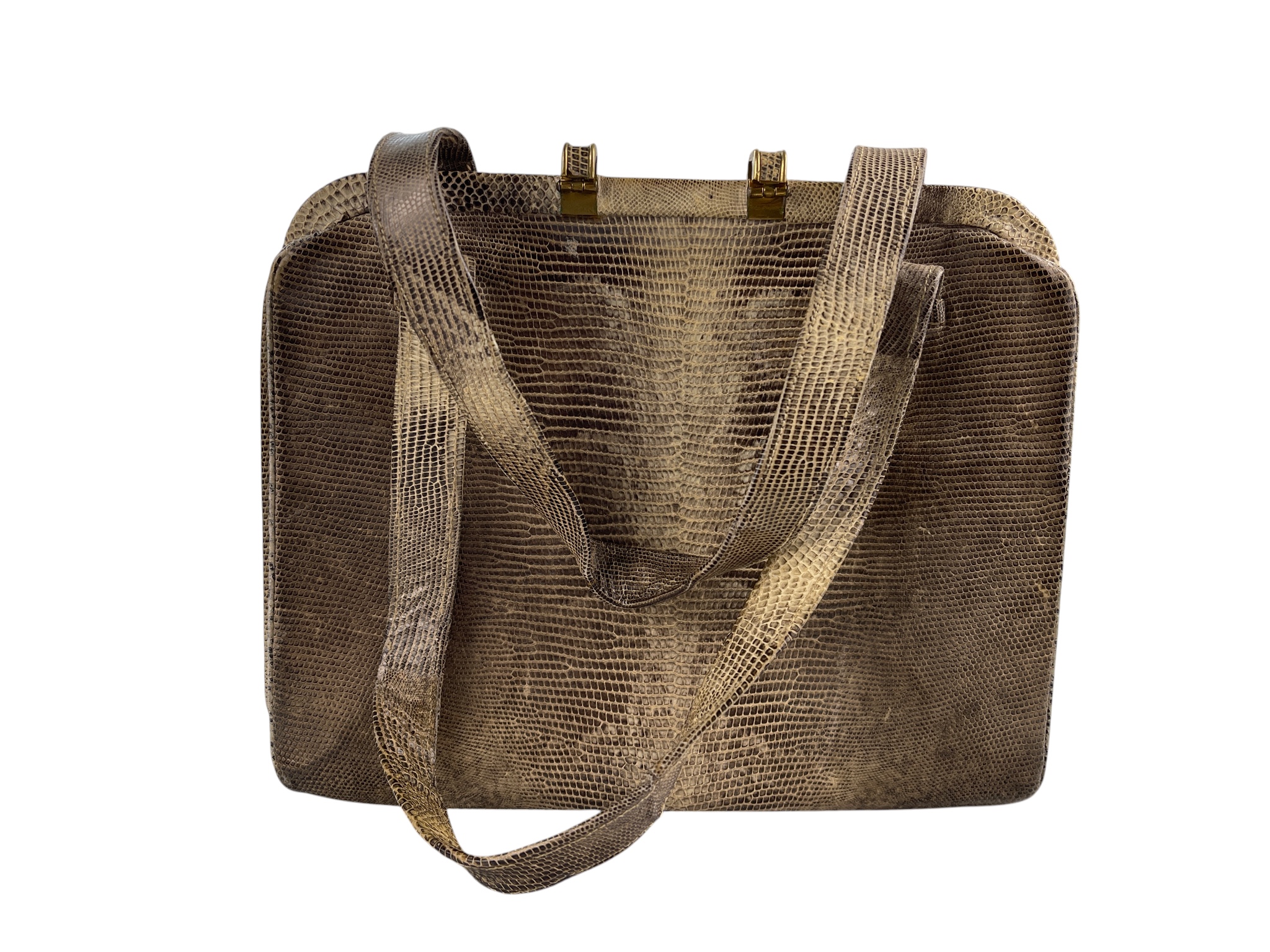 Vintage Echsenleder Leder Damentasche Handtasche 19 x 22 x 4 cm. Zustand siehe Fotos
