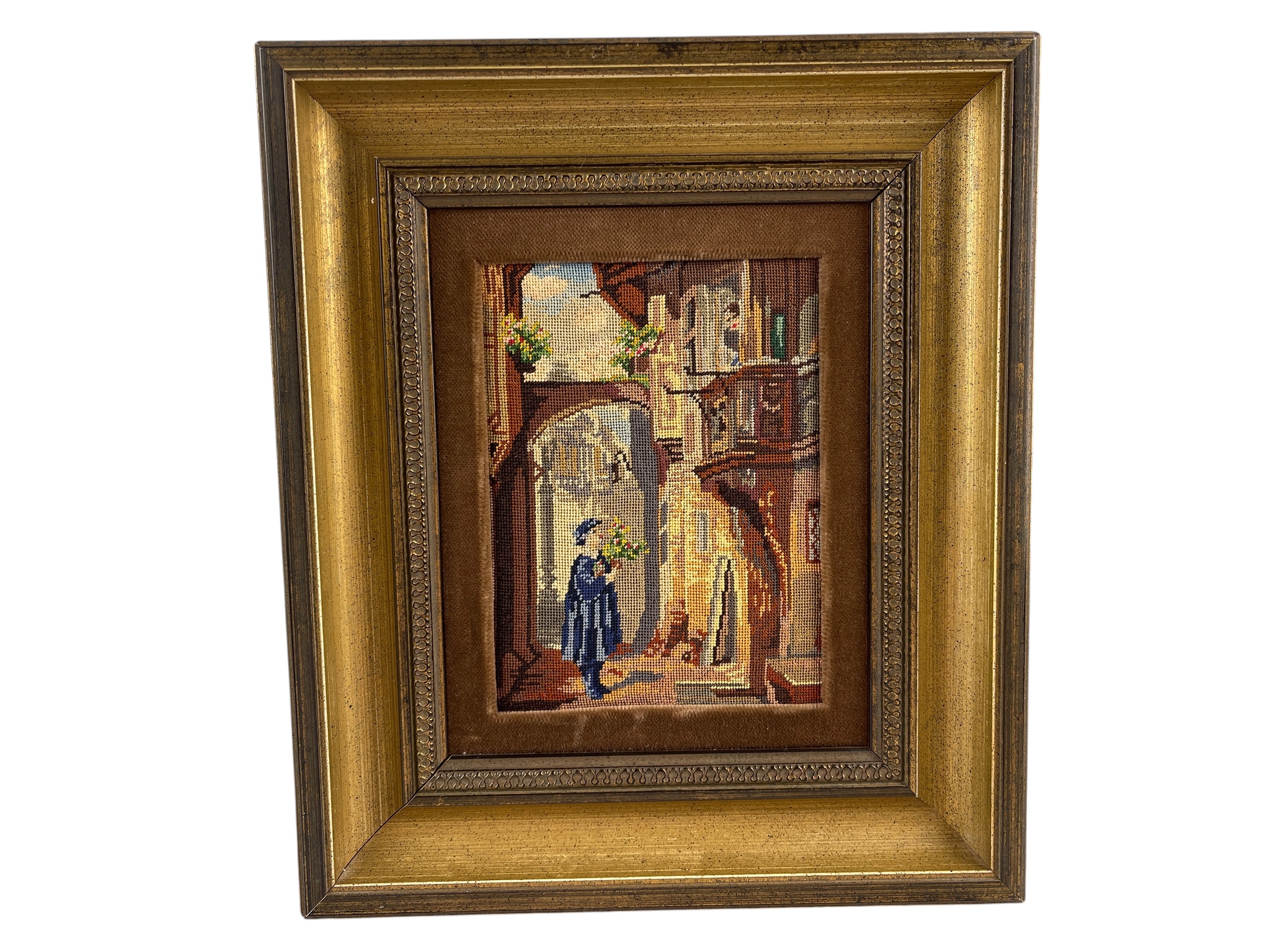 Wandbild Stickerei Carl Spitzweg "Gobelin" 25 x 21,5 cm - Zustand siehe Fotos