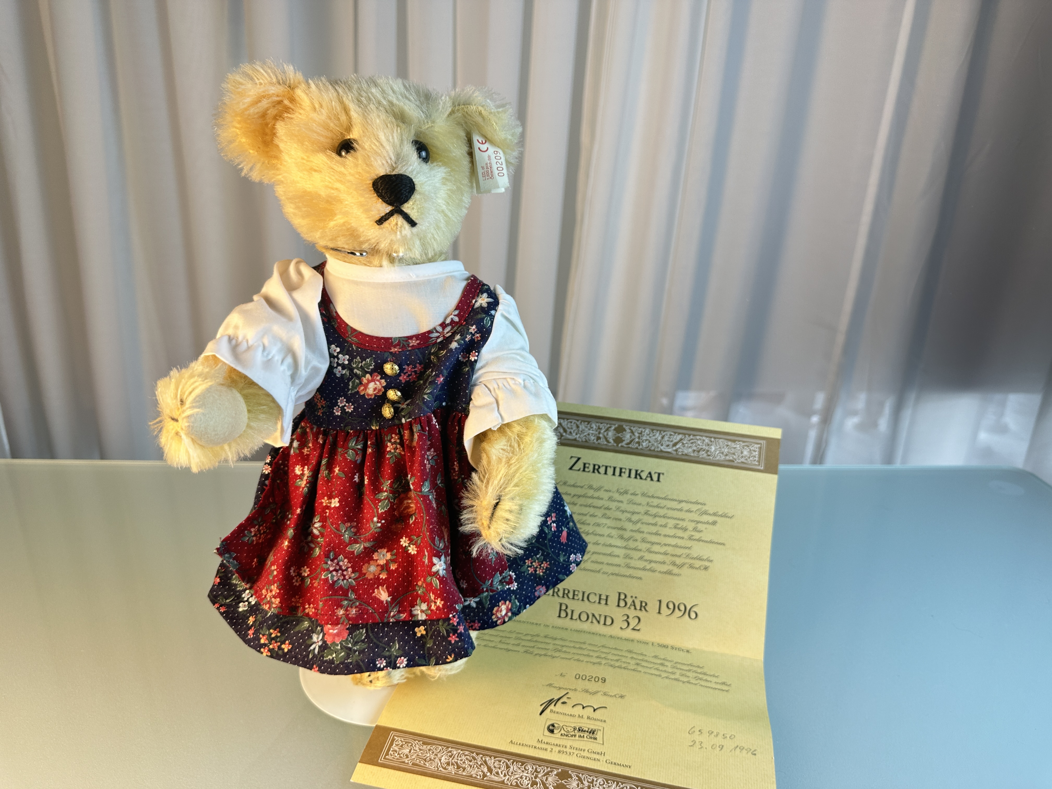 Produktinformationen "Steiff Österreich Bär 1996 659850 Ltd. 32cm Top Zustand mit Zertifikat "